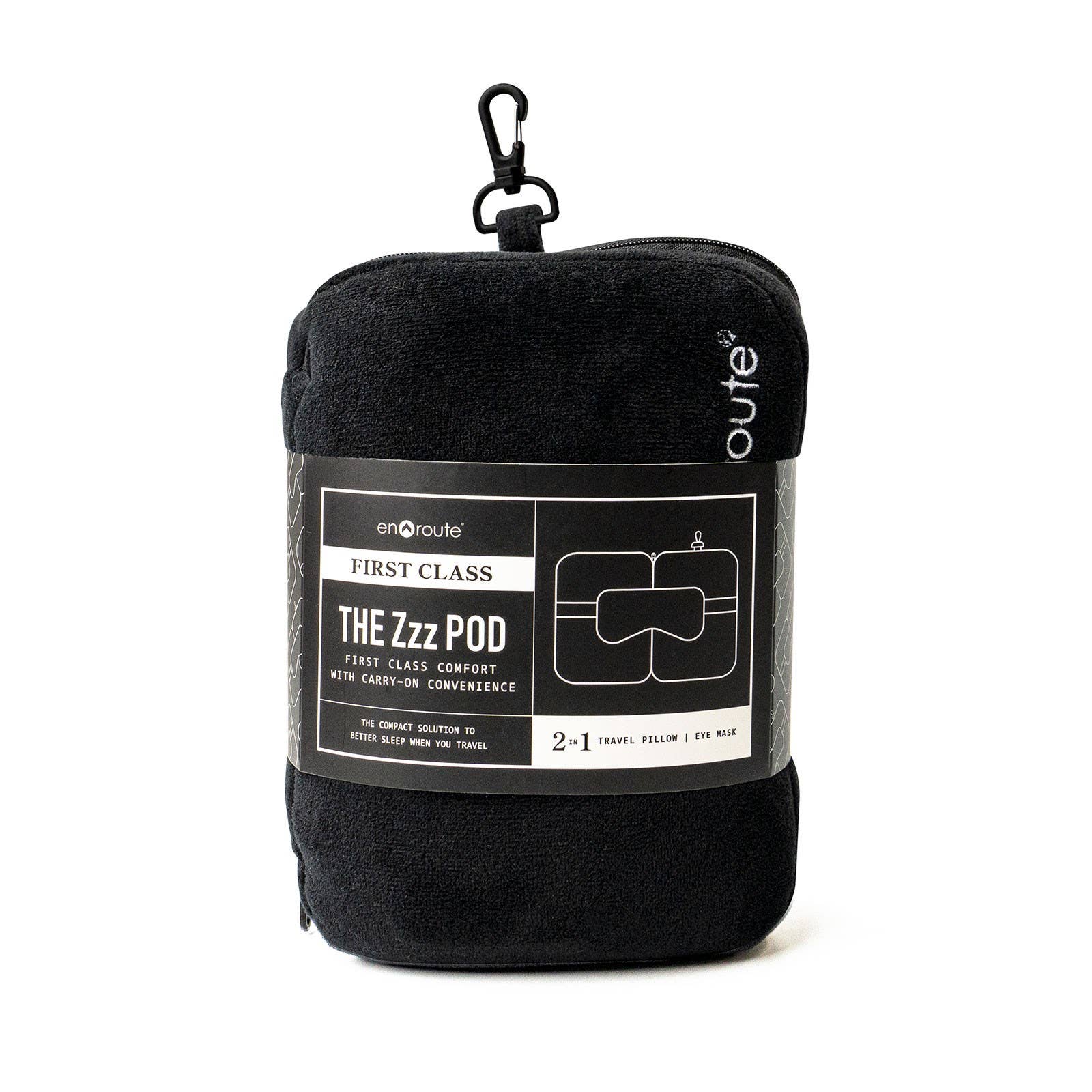 En Route® The Zzz Pod 2-in-1 Travel Pillow & Eye Mask Catch some Zzz’s in any travel mode with this unique 2-in-1 eye mask and pillow pod. Designed for the center seat or bumpy car, this blackout eye mask acts as a strap to keep an ultra plush pillow safely in place around your head. Fold, zip and clip for easy storage while traveling. -Compact travel pillow + attached sleep mask -Foldable, zip-close design + mini carabiner -Super soft microfiber -Plush support for any setting/position