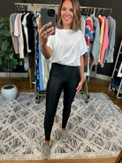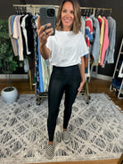 These High Waisted Pebble Faux Leather Leggings are your secret weapon for looking polished without the fuss. The textured pebble design gives major edge, while the high-rise waistband and tummy control work together to keep you feeling confident and supported. Sized true to fit, they're versatile enough to pair with anything in your closet. Comfort meets attitude in one seriously stylish package.
