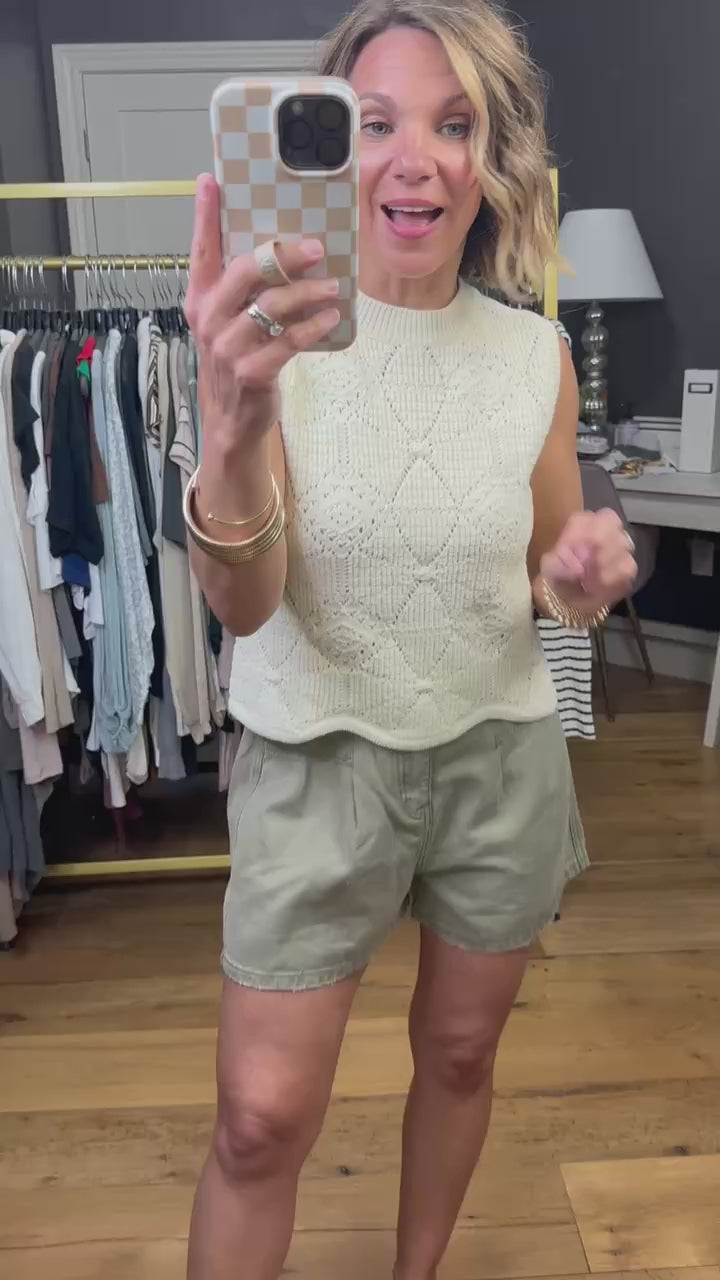 These pretty knit tops are getting better and better! This one features a delicate print throughout the knit design and a cute scalloped bottom hem. This tank is bra friendly and fits true to size. Such a cute option for pairing with shorts or linen pants this season!