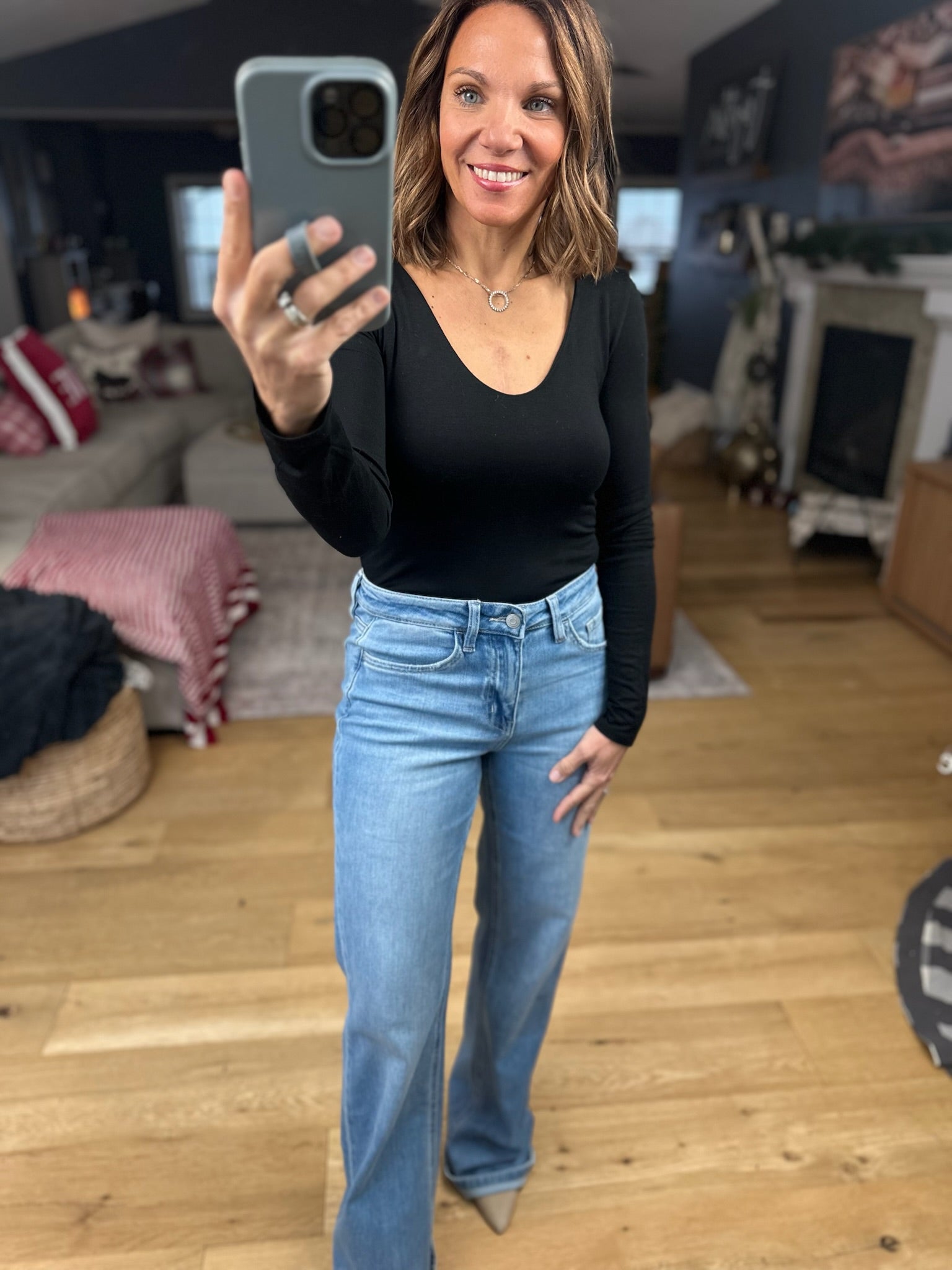 This is a perfect fitted style for when you want the tucked in look, but don't necessarily want a bodysuit! It fits true to size with a v-neckline and long sleeves. Pair this with skirts, denim or trousers for an easy, chic look!
