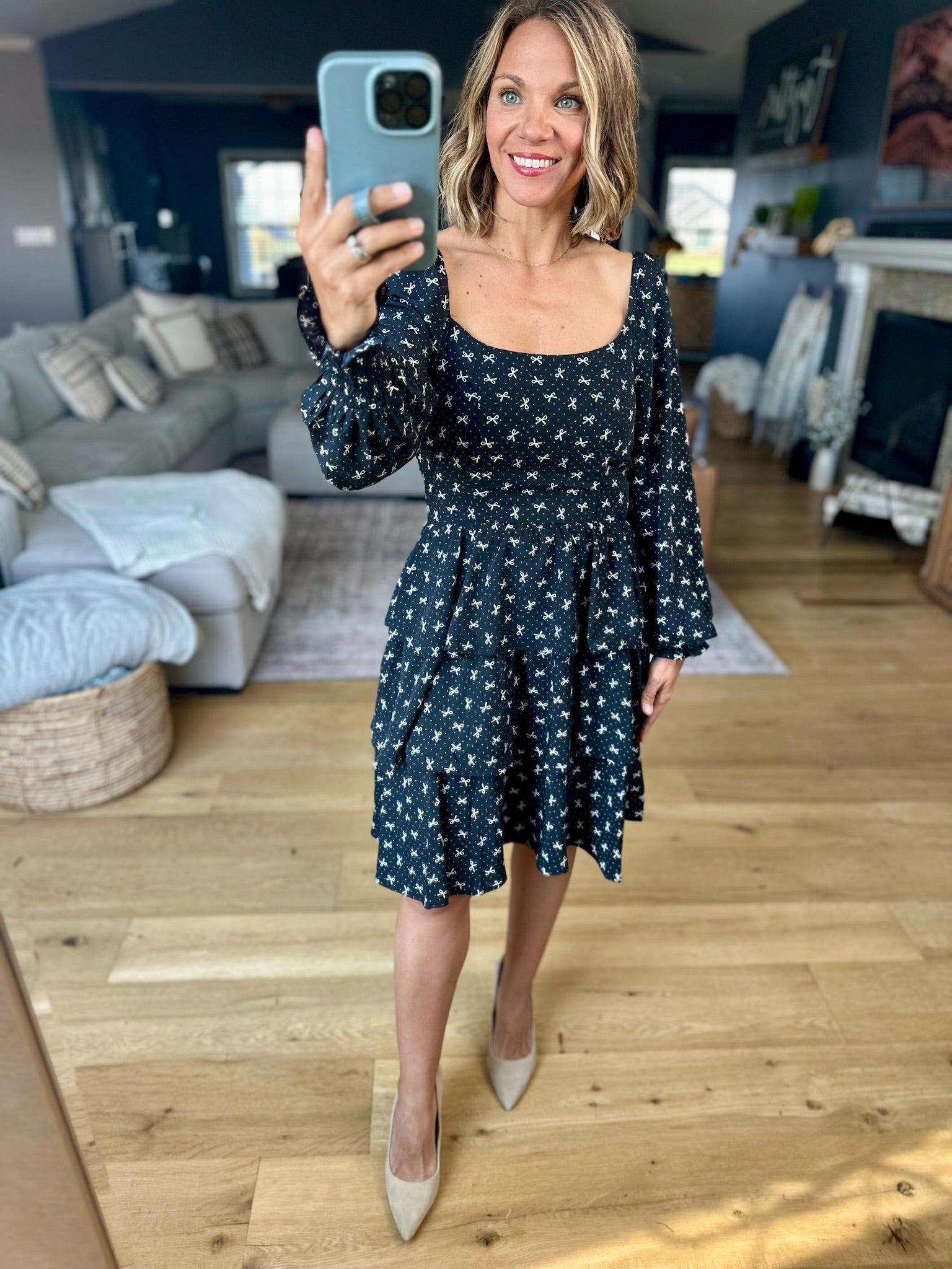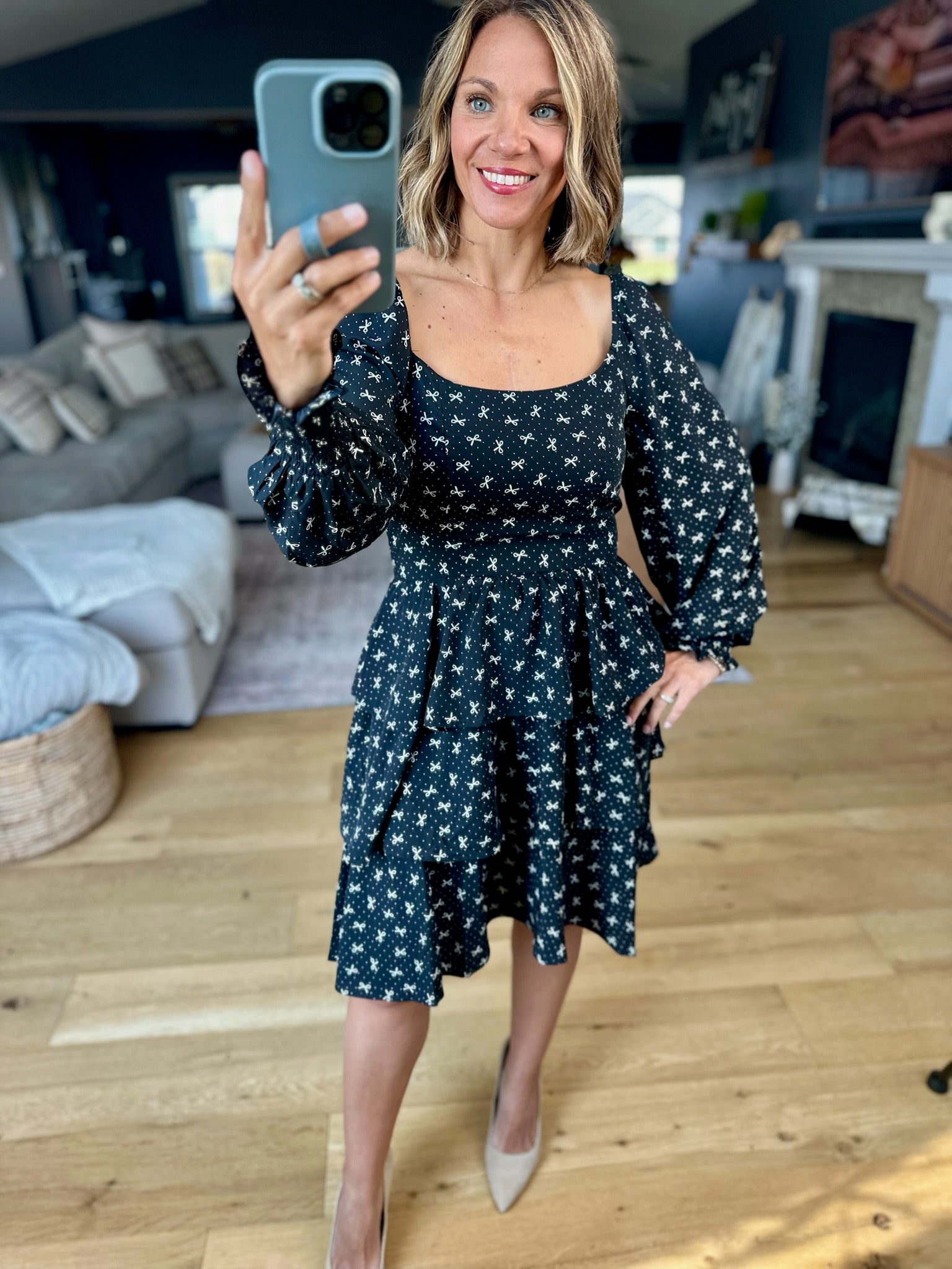 The Any Way Possible Tiered Dress in Black is a must-have with its flattering square neckline and true-to-size fit. Balloon sleeves add a whimsical flair, while the tiered, flowy design moves beautifully with you. Featuring a delicate print, this dress brings effortless charm to your wardrobe!