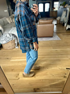 Fall means flannel season! This one is a perfect casual flannel button down, great for throwing on with denim or leggings all fall long. It fits true to size with a longer length.