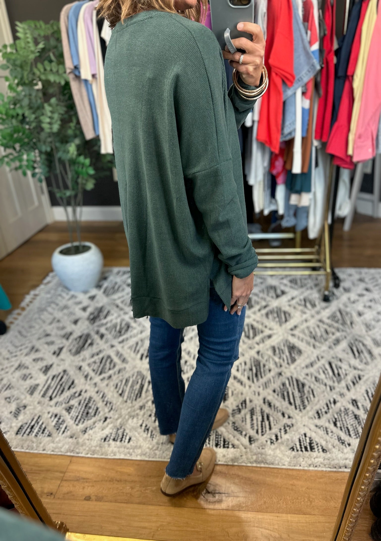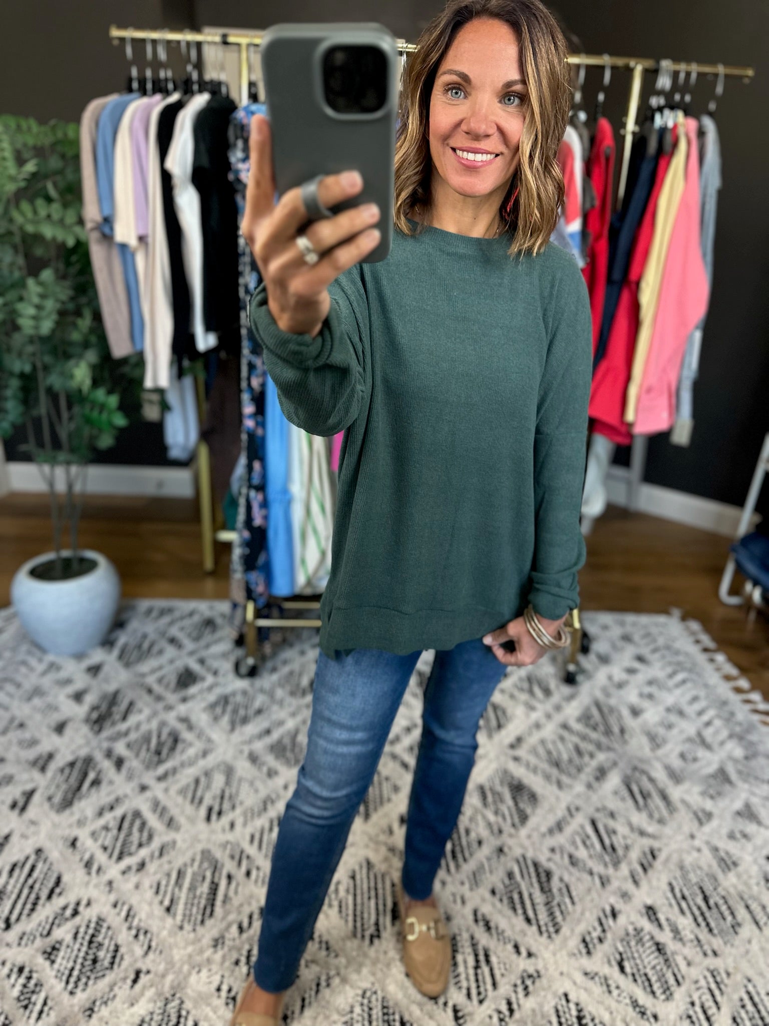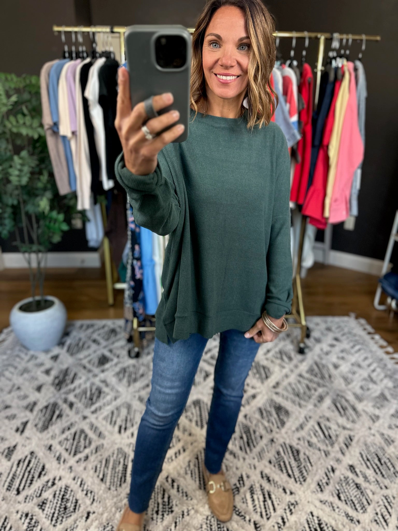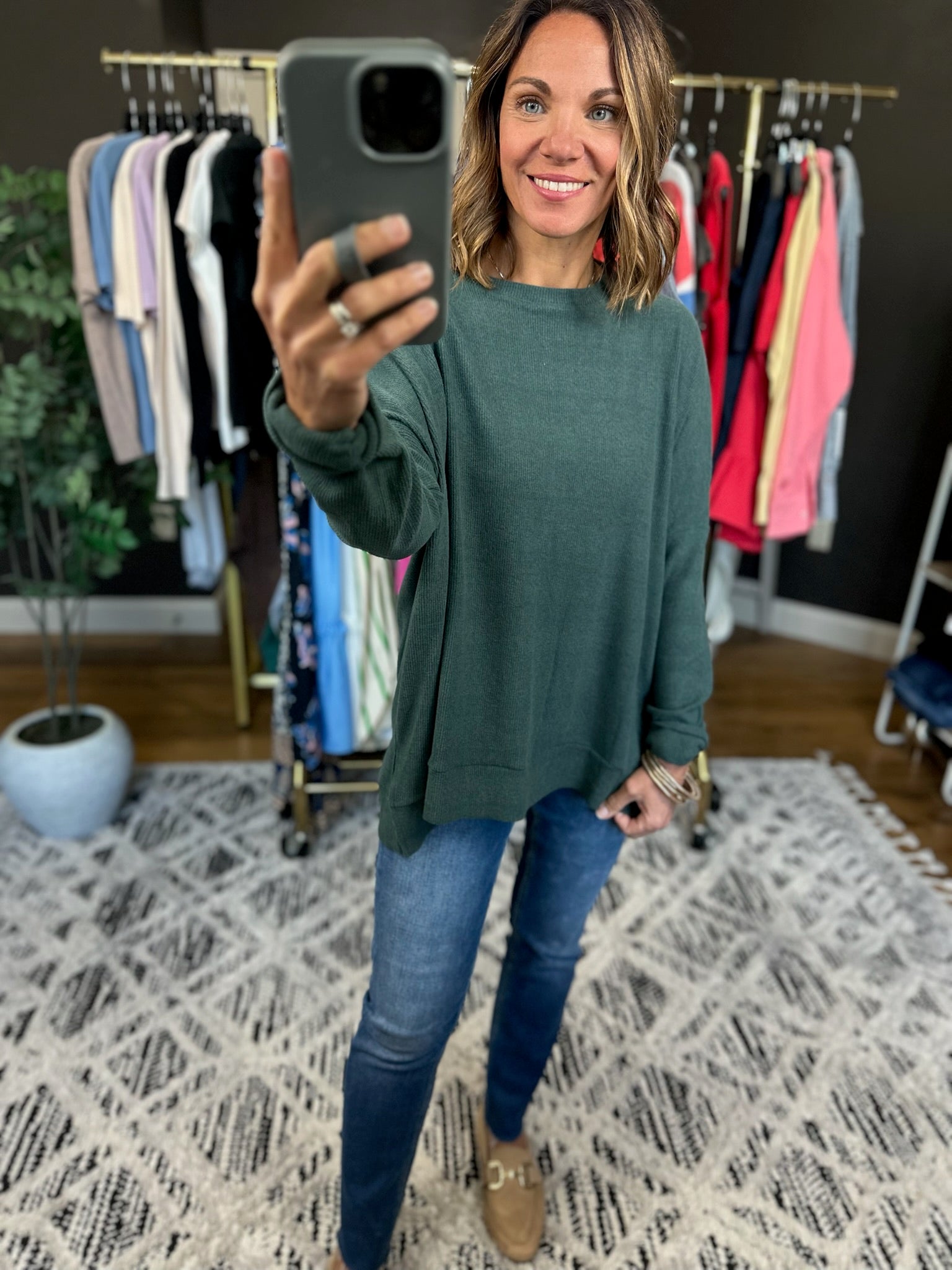 Embrace comfort with the Stick With It Flowy Crew, a laid-back essential that's here to stay. Featuring a relaxed drop shoulder silhouette and crew neckline, this piece flows beautifully without clinging. True to size and legging-friendly, it's the perfect companion for your favorite bottoms—whether you're running errands or keeping it cozy at home. Simple, stylish, and ready for anything.