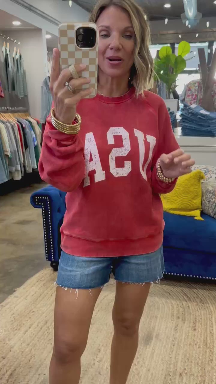 USA Vintage Wash Crewneck Sweatshirt - Red