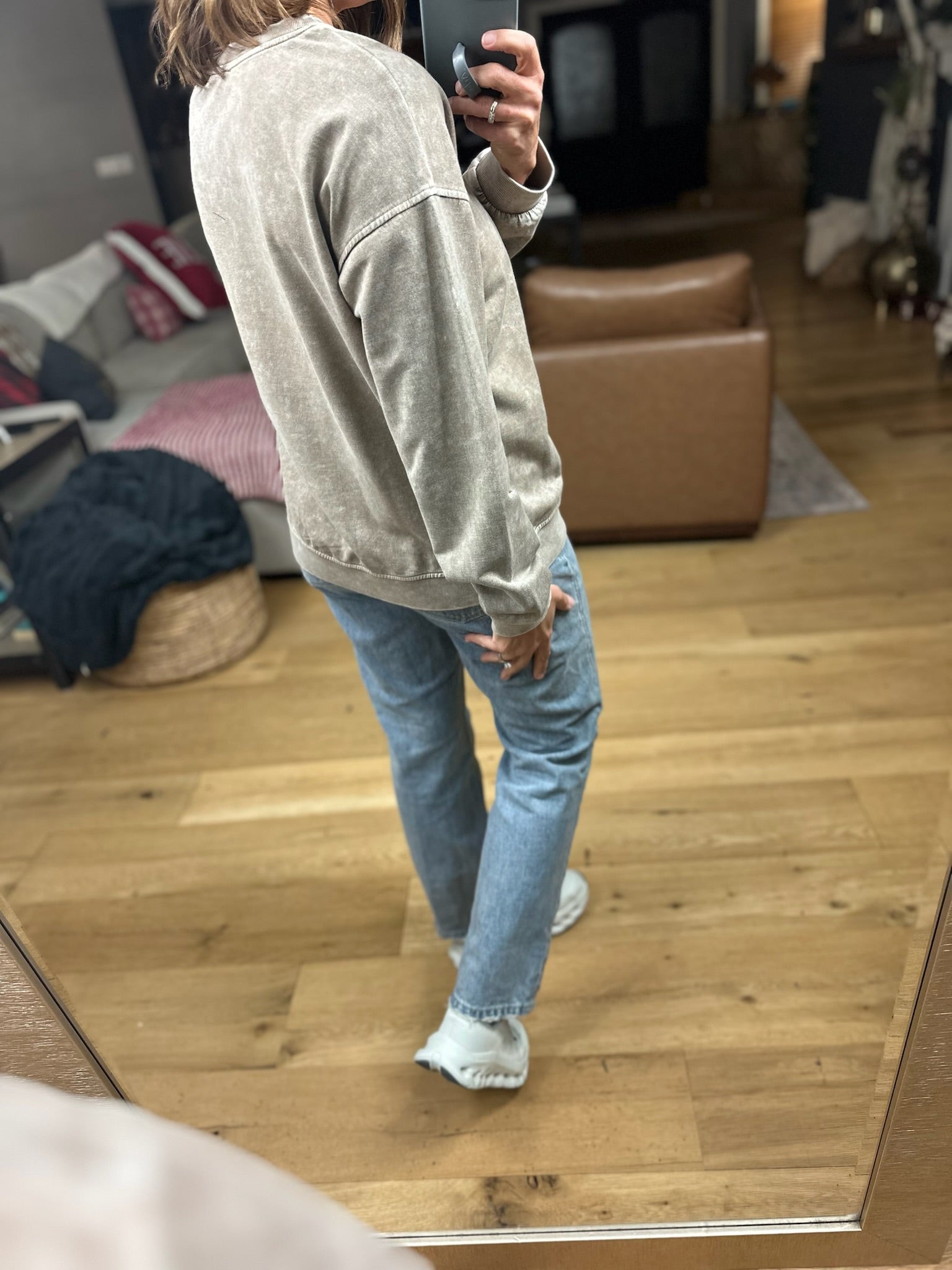 Two color options in this cute Wild West Crew Sweatshirt! It is a mineral wash pullover with a fun western graphic across the front. It fits true to size and is a standard length. Pair with denim and sneakers for a casual day!