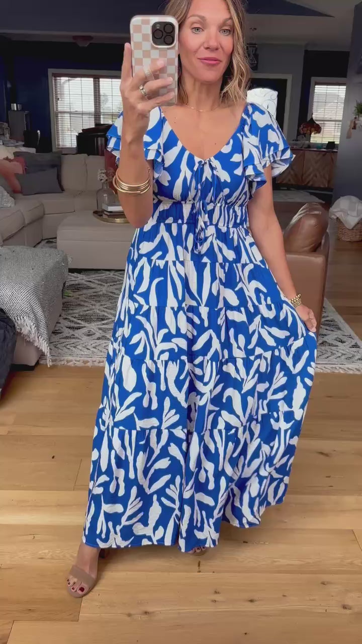 Step into style with the Just The Beginning Pocket Dress in a vibrant royal hue. This playful maxi dress features a charming floral print and flattering ruffle details that add a fun, flirty touch. Designed true to size, it offers a comfortable fit with a v-neckline. Plus, handy pockets make it as practical as it is pretty!