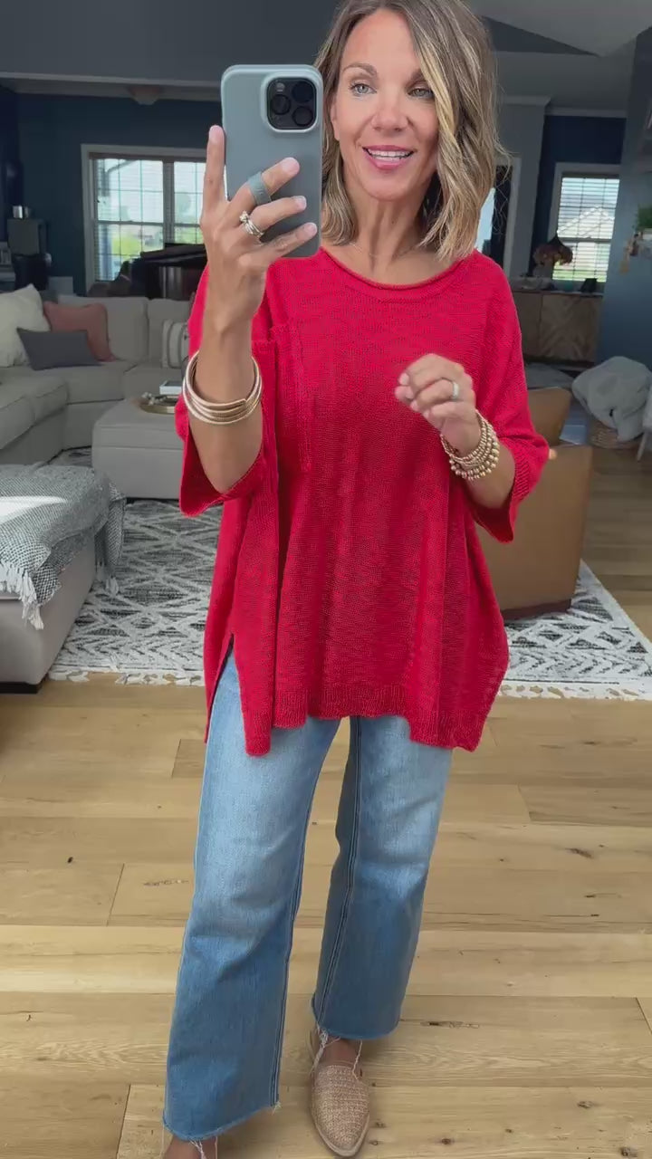 We grabbed this easy-going tee in three great color options! This fits true to size, but has a draped style and boat neck. It is a longer length and has side slits along the bottom hem. Pair simply with denim and mules or sneakers!