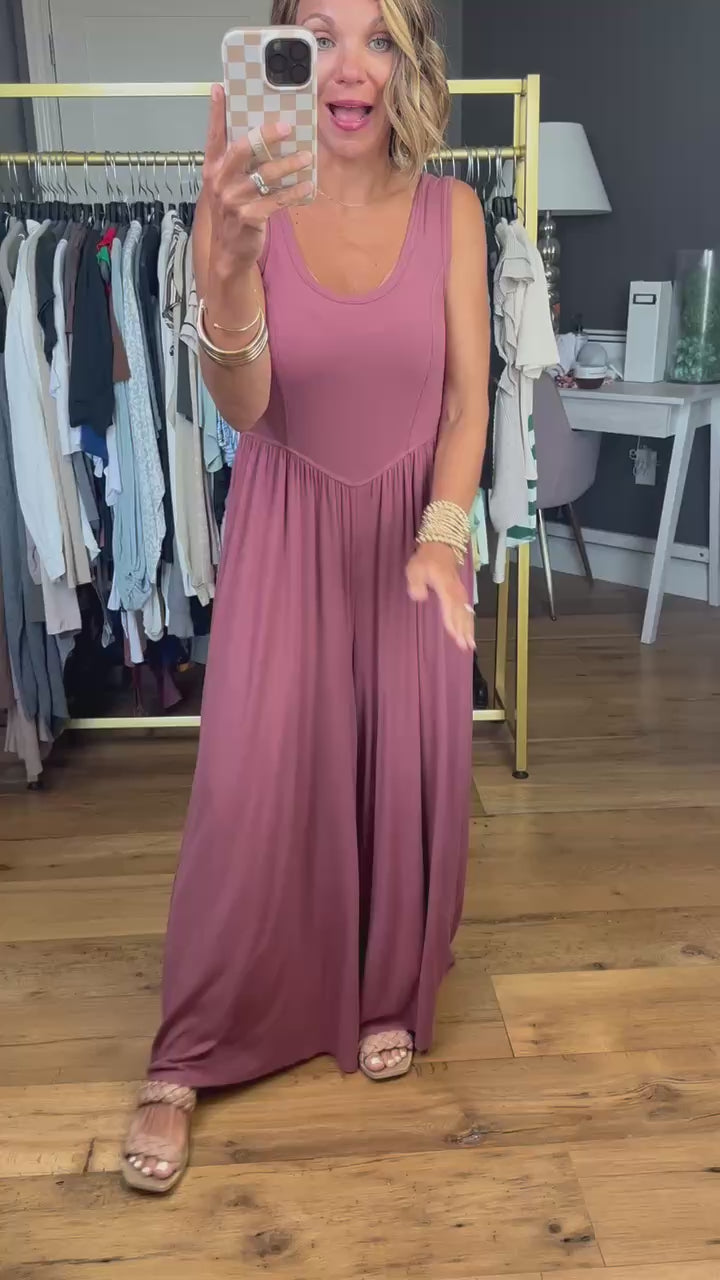 If you miss this one you will be looking back at this jumpsuit wishing you had it just like the name implies! This is a super cute, flowy jumpsuit style in a pretty mauve color. This has wide enough straps to pair with a bra, a scoop back and wide leg design. This is a comfortable and super cute option to pair with sandals or sneakers this season!