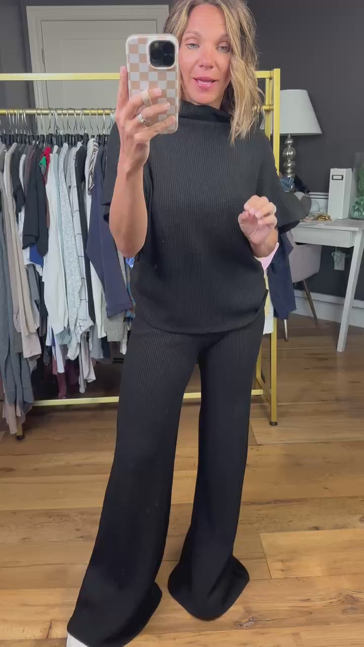 Make The Best Ribbed Wide-Leg + Cowl Neck Top Set - Multiple Options