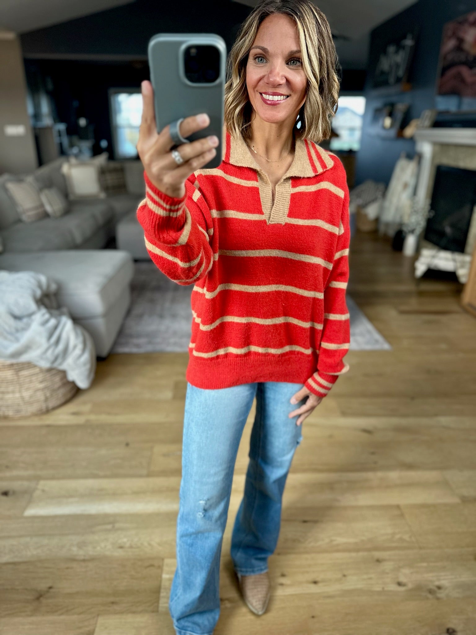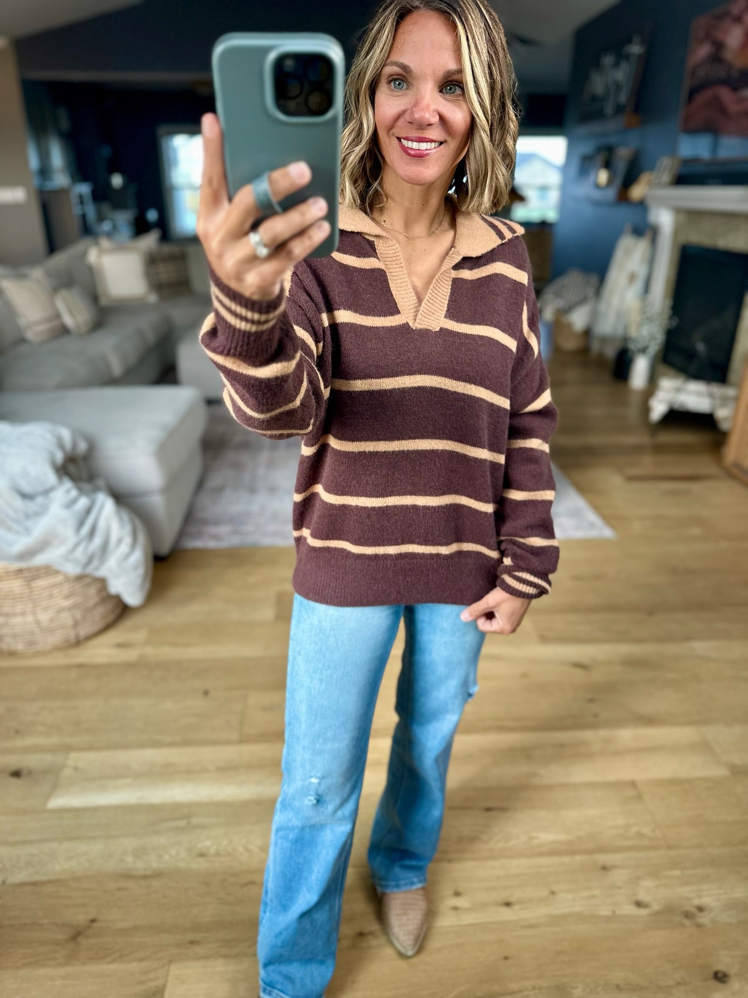 Choose your vibe with the One Or The Other Striped Collared Sweater! Offered in two striped color options, this true-to-size sweater brings casual cool with a cozy feel. The classic collared neckline adds a dash of charm, perfect for those days when you want comfy style with a playful twist. Slip it on and make your outfit pop with effortless warmth and flair!