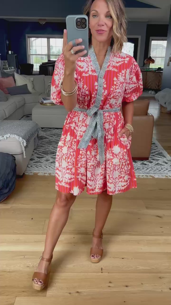 Step into style with the Own The Room Pocket Dress! Featuring mixed prints and flattering puff half sleeves. This dress ties at the waist to highlight your silhouette perfectly too! True to size and a fun option for your next event!