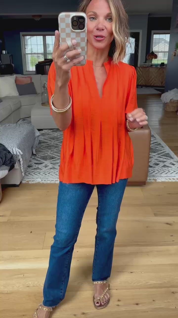 Embrace sunny vibes with the Paradise Sun Pleated Top. Its lightly textured fabric and flowy silhouette. Featuring a charming v-neck and half-length sleeves, this top is true to size and perfect for adding a touch of color to your everyday look!