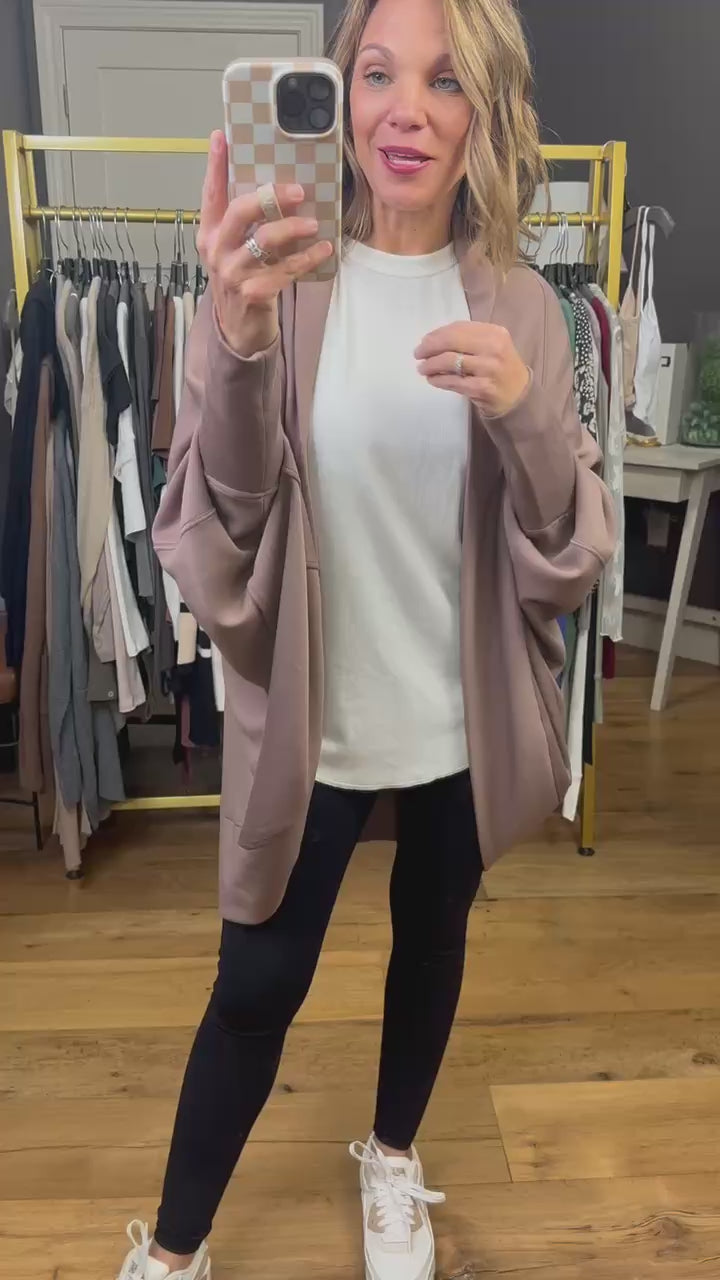 Right At Home Dolman Scoop Hem Cardigan - Deep Taupe