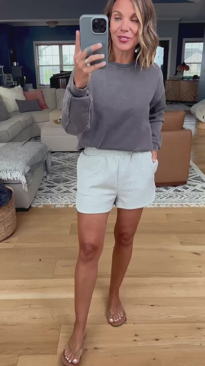We grabbed these easy-going shorts in 4 color options! These are a great style to have in your wardrobe for casual days at home, running errands or walking the dog. They fit true to size with an elastic waistband and pockets. Pair with tanks, tees or pullovers!