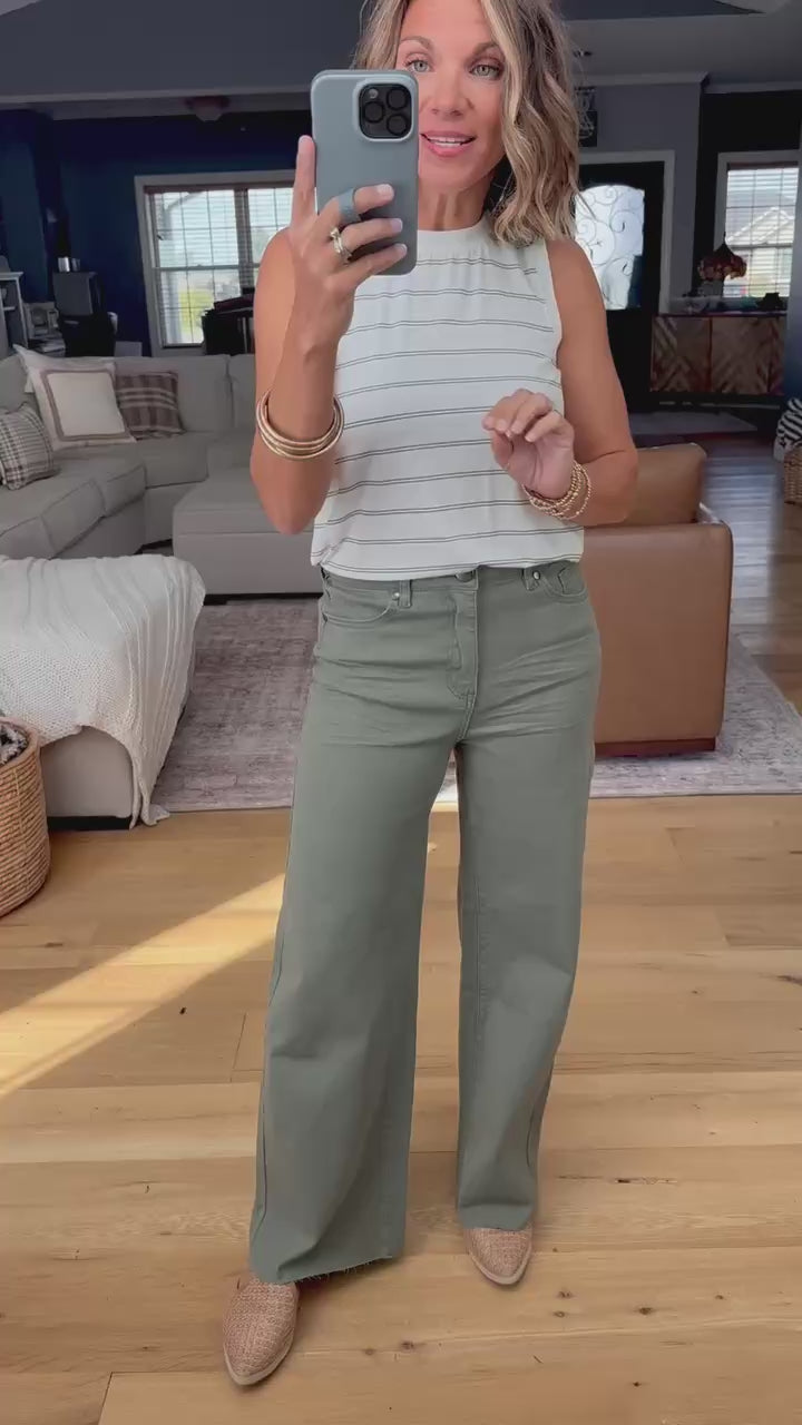 The perfect mix of comfort and polish. Featuring a flattering high rise and easy, relaxed leg, they bring effortless style to your wardrobe. The ash olive shade adds a modern, versatile touch, making them just as easy to pair with a casual tee as they are to dress up with a blouse. A timeless staple you’ll wear on repeat.