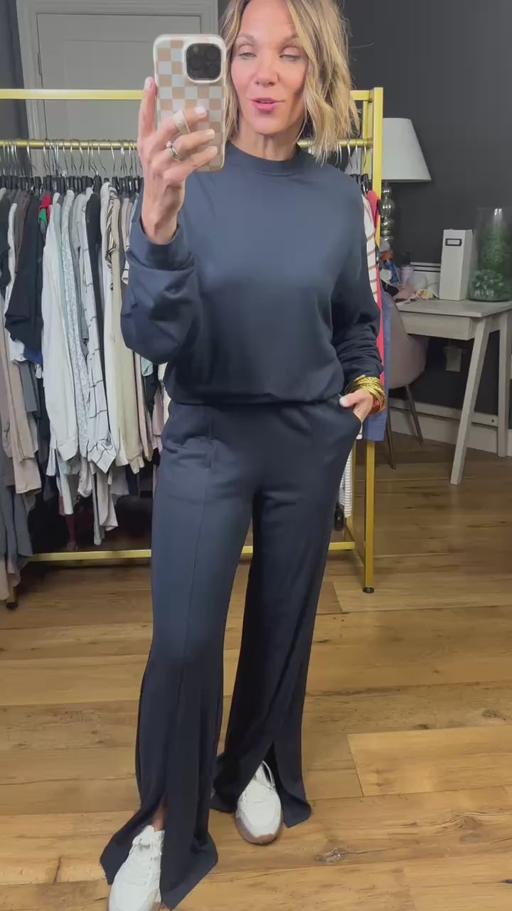 The Kelsey Split Hem Pant + Crew Top Set - Navy