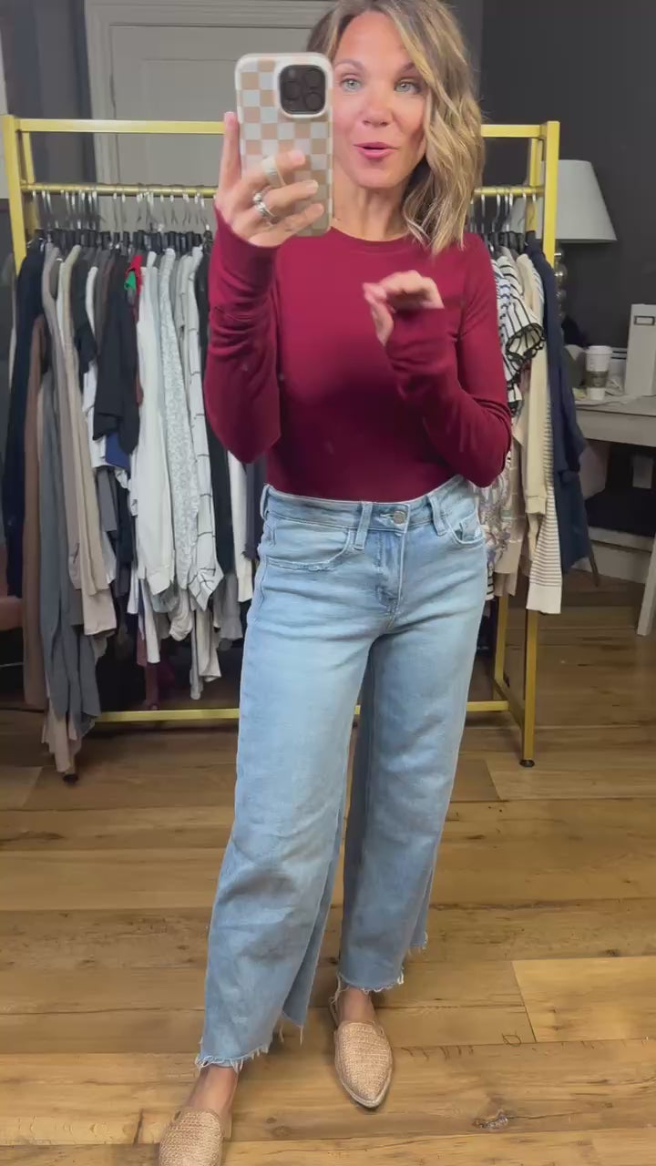 This is a staple long sleeve ribbed top that is super versatile for your wardrobe! This comes in four color options, fits true to size and is a lightly fitted style. This is a great layering piece for under sweater vests, cardigans or just as is!