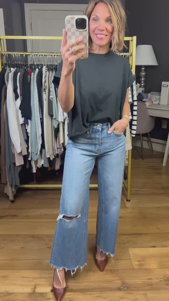 Step up your denim game with The Penelope High-Rise Wide-Leg Crop Denim. Featuring a flattering high rise waistband and trendy distressed detailing, these jeans will elevate any outfit. The wide leg style and raw bottom hem add a touch of edginess, while the crop length keeps it modern. Plus, they're true to size for a perfect fit.