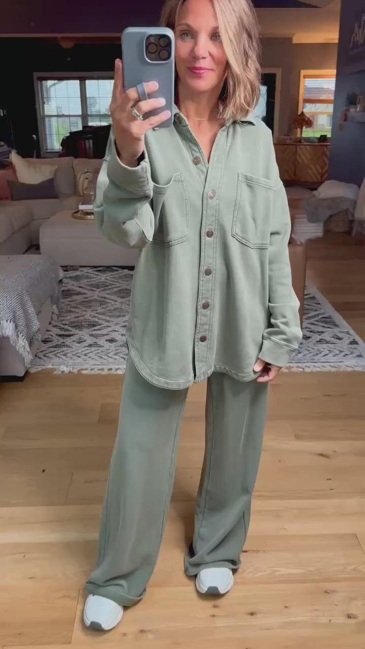 This brand has some of the best quality, and cutest pieces, so we just had to grab this matching set! (sold separately) This button down top fits true to size, but relaxed, and is a perfect shacket style for the fall season. We love the olive green color paired with the matching pants, Z-Supply Hunter Knit Pant, or with other items in your wardrobe!