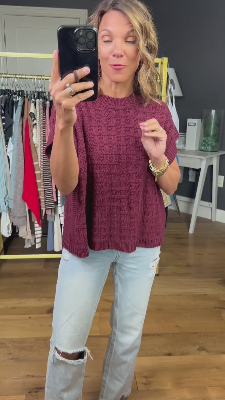 This is a go to knit top for the fall season ahead! This fits true to size with short sleeves and standard length. It is cute for pairing with denim as is, but you can also throw on a long sleeve or bodysuit underneath for added warmth!