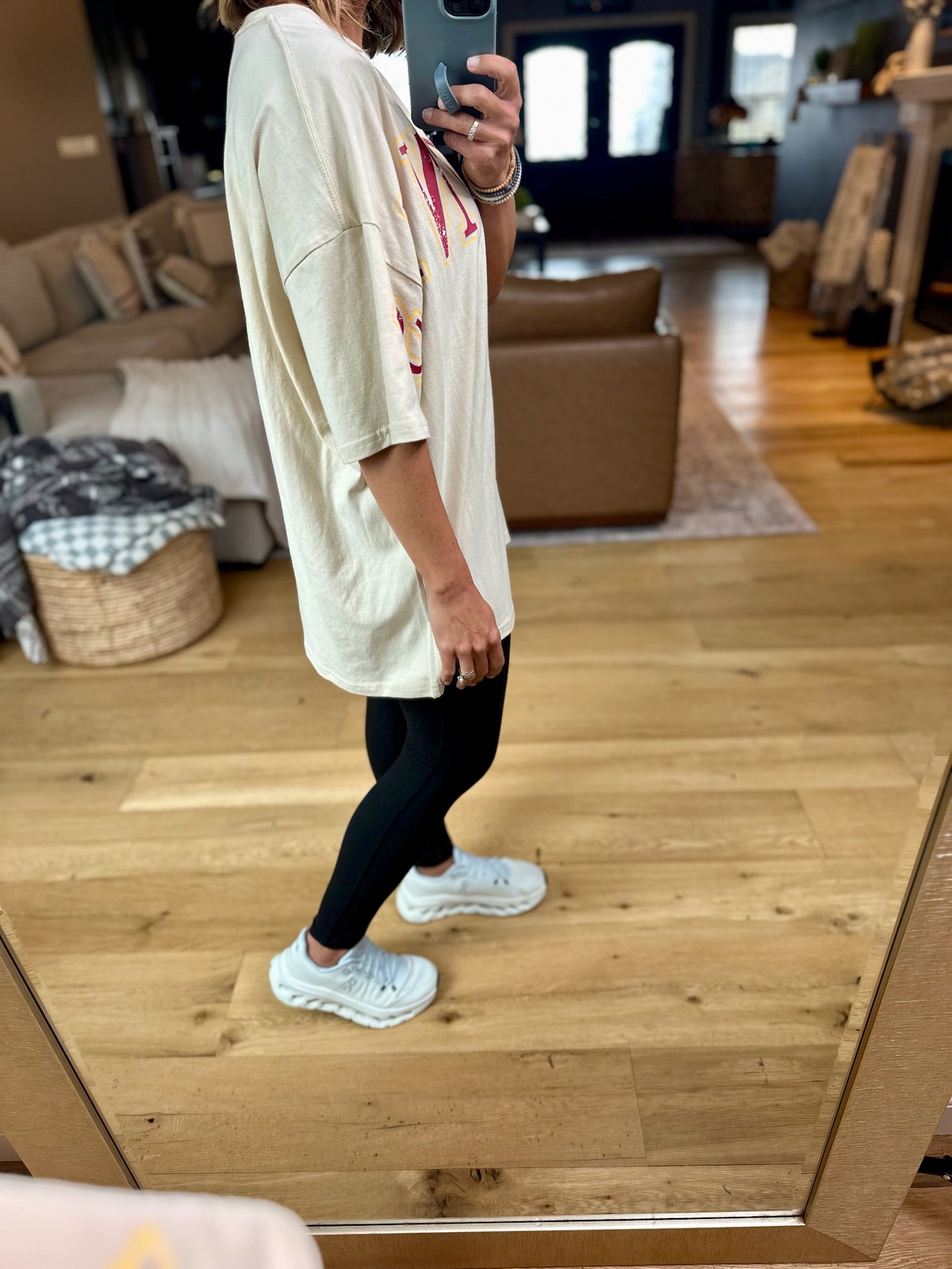 Rep your team in style with this oversized black washed tee from Gameday Social. Designed with a relaxed fit and vintage-inspired wash, it’s the perfect mix of comfort and edge. Whether you’re tailgating, cheering in the stands, or layering it up for crisp fall football Saturdays, this tee brings effortless Cyclone spirit to every game day.
