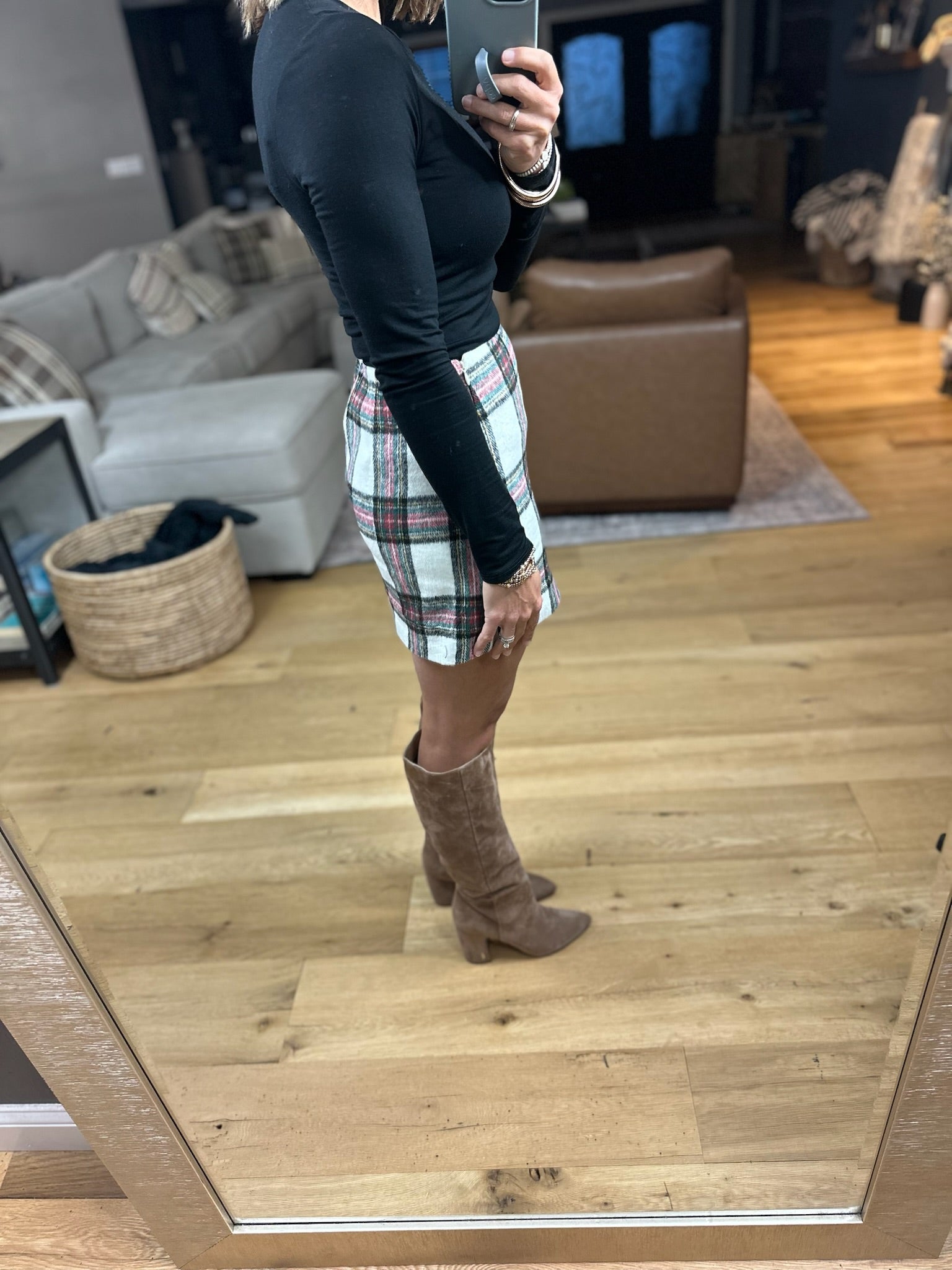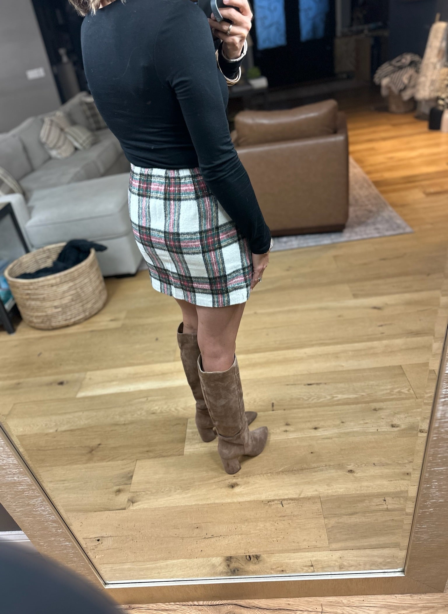 We are obsessed with this plaid skort for fall! This fits true to size and offers the look of a skirt, but the functionality of shorts underneath! Pair with a simple long sleeve or sweater and boots!