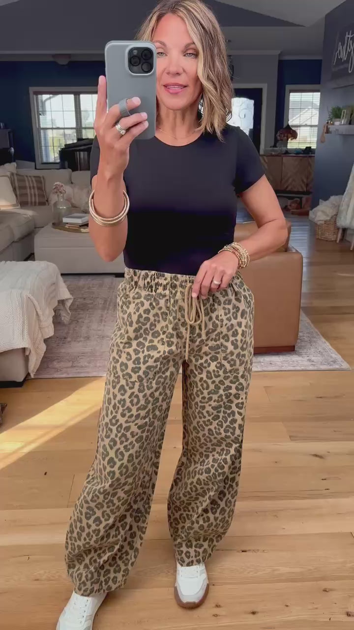 Add a bold edge to your everyday look with these leopard print drawstring pants. Featuring a relaxed wide-leg fit, soft breathable fabric, and an adjustable waistband, they blend comfort with statement style. Perfect for pairing with a simple tee and sneakers or dressing up with a chic blouse and boots.